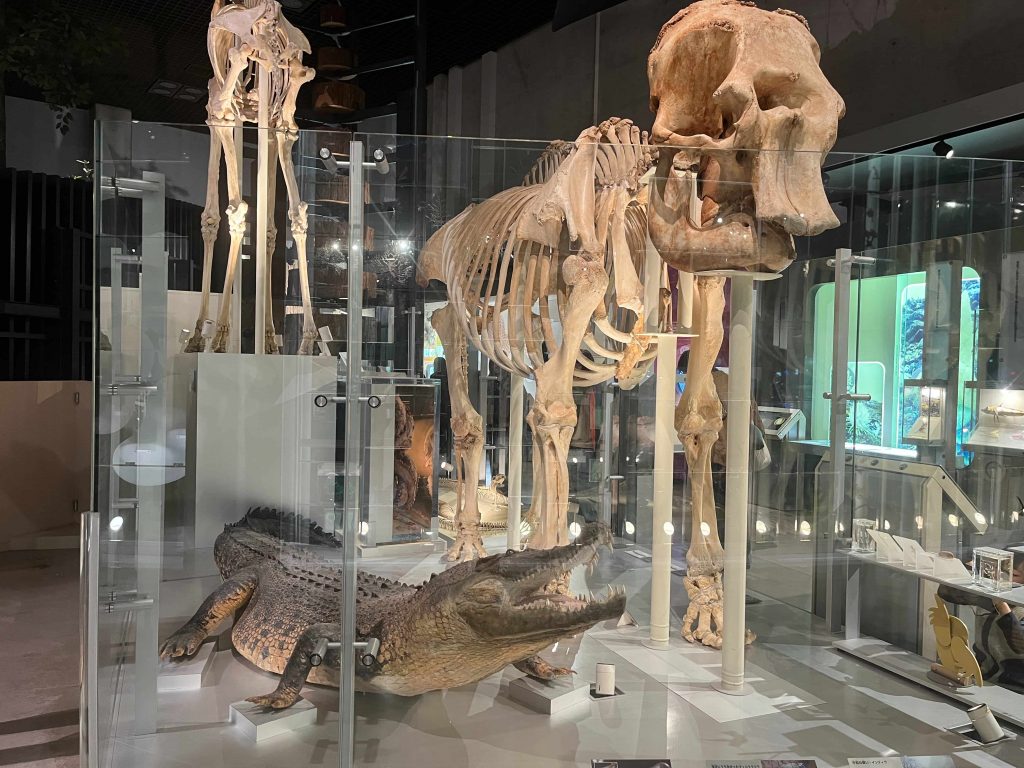 象の祖先のような大型哺乳類の全身骨格やワニの剥製など、時代の異なる生き物たちが、同じ空間で私たちに生命の力強さを語りかけているようでした。また、森の再現展示では、オランウータンや美しい鳥たち、ヒョウのような動物の剥製が並び、多様な生態系を目の当たりにし、環境に適応して進化してきた生き物たちの特徴や生き抜く知恵を感じました。